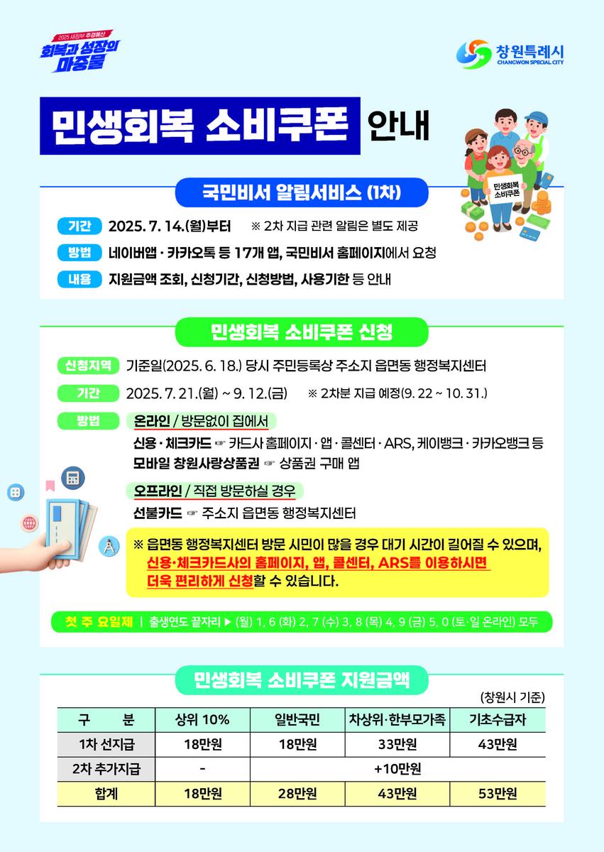 | 2025년 7월 21일 | 1차 민생회복 지원금 신청 시작. | 온라인 및 오프라인 신청 개시 |