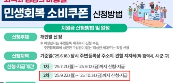 | 2025년 9월 22일 | 2차 민생회복 지원금 신청 시작. | 소득 상위 10% 제외 대상 |